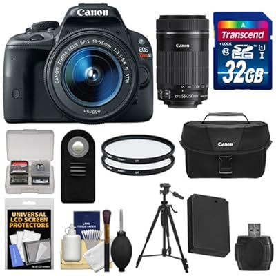 You're looking for Canon EOS Rebel SL1 Digital SLR Camera EFS 1855mm IS STM Lens with EFS 55250mm IS Lens 32GB Card Battery Case Filter Tripod Kit This is a quality product We recommend.